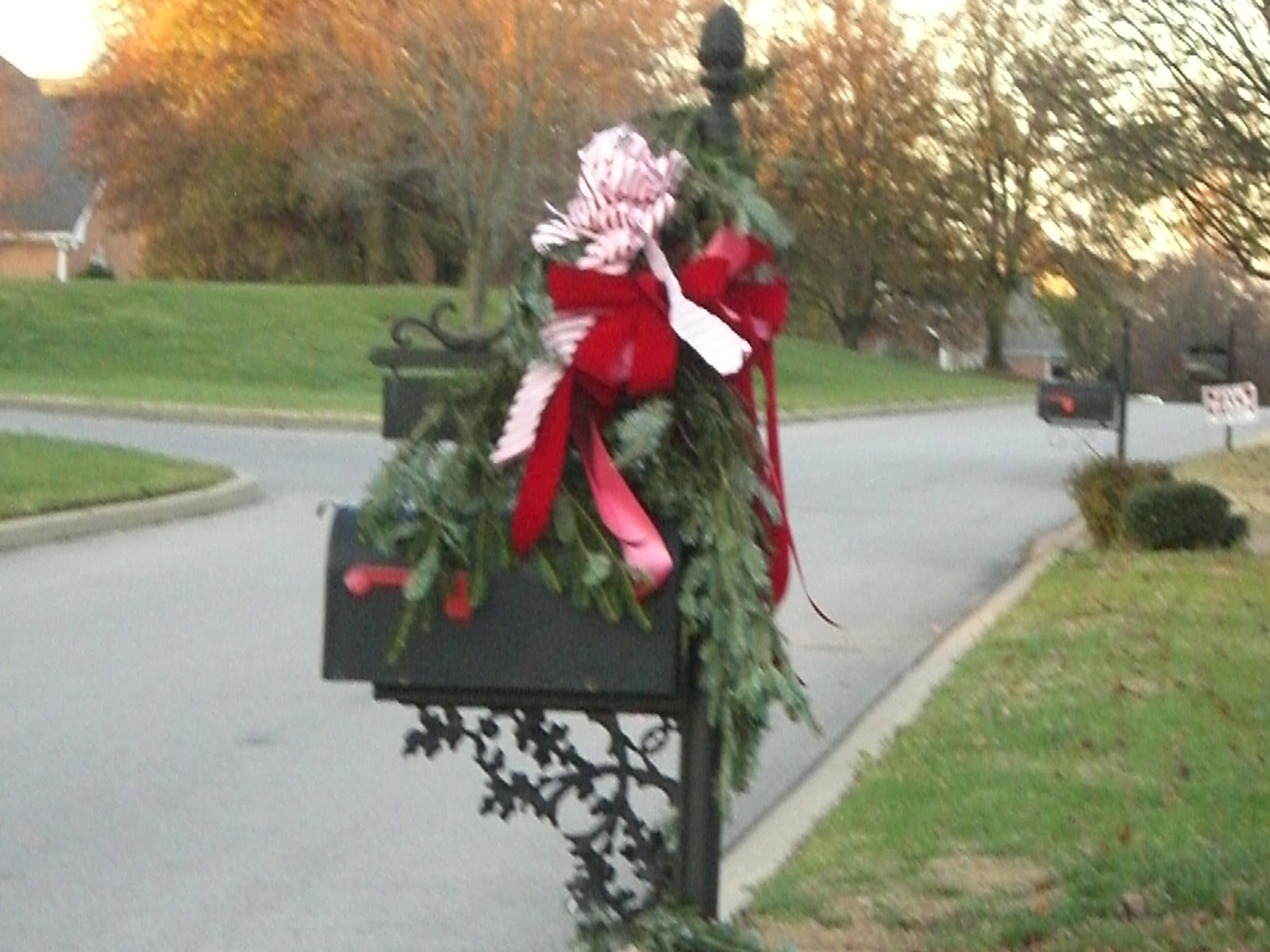 I love our flocked wreaths! It looks like it snowed all over them! Teresa does a great job and makes beautiful bows. She called me a while ago to tell me she was in our neighborhood and dressed up the mailbox. Is that great customer service or what??